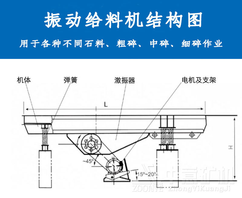 1.振動(dòng)給料機(jī)結(jié)構(gòu)簡(jiǎn)單,振動(dòng)平穩(wěn),喂料均勻,連續(xù)性能好,激振力可調(diào);