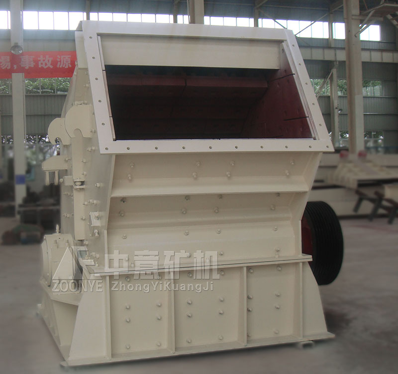 反擊破碎機經過三角帶傳動帶動轉子高速運轉,物料自入料口進入破碎腔內,被高速旋轉的錘頭打擊,沖擊渦旋破碎,未被充分破碎的大塊物料,在P破碎腔部的厚反擊板與錘頭作用下產生大的壓力與彎曲力,即使很難破碎的物料也能輕易被粗碎后進入下段S破碎腔和T段破碎腔,物料在此二破碎腔內受到摩擦、擠壓、沖擊、折斷、而得到中、細碎后排除機體。