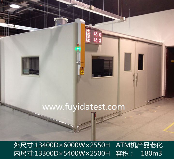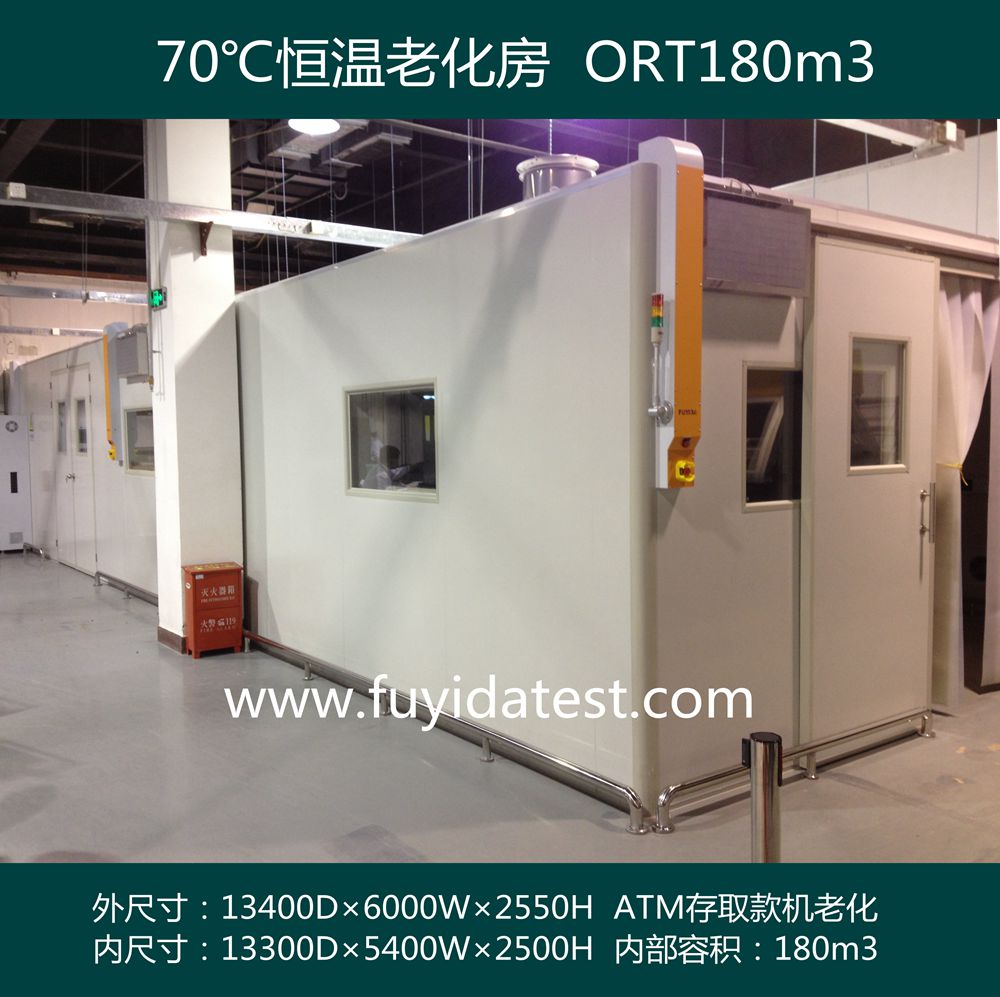 1、老化量:產品(220V,2.2A)26臺套 8.2、總電量需求:老化房本體:加熱約72KW,老化房總配電約80KW;(本方案不涉及產品老化用電部分) 8.3、場地尺寸:13000D×5500W×2550H(內尺寸:12900D×4900W×2500H,170m3),1間 8.4、大門尺寸:1800W×2300H(雙開門),西面南面各設計1套上開門 8.5、庫體材質:50T厚雙層彩鋼巖棉板 8.6、地面材質:不做處理 8.7、玻璃視窗:位于門上、尺寸350mm×500mm 8.8、固定方式:連接處采用專用連接鋁材 8.9、溫度范圍:室溫~70℃±2℃;升溫時間:室溫到65度大約需30分鐘(空載) 8.10、溫度精度:±0.5℃ |