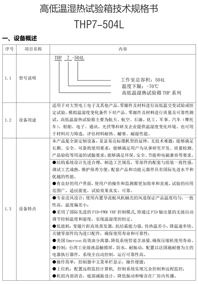 富易達FUYIDA-THP系列-高低溫交變濕熱試驗箱| 選型參數表